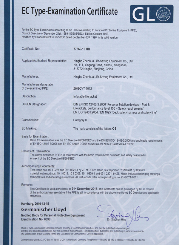 Chaleco salvavidas de traballo inchable con traxe de piloto